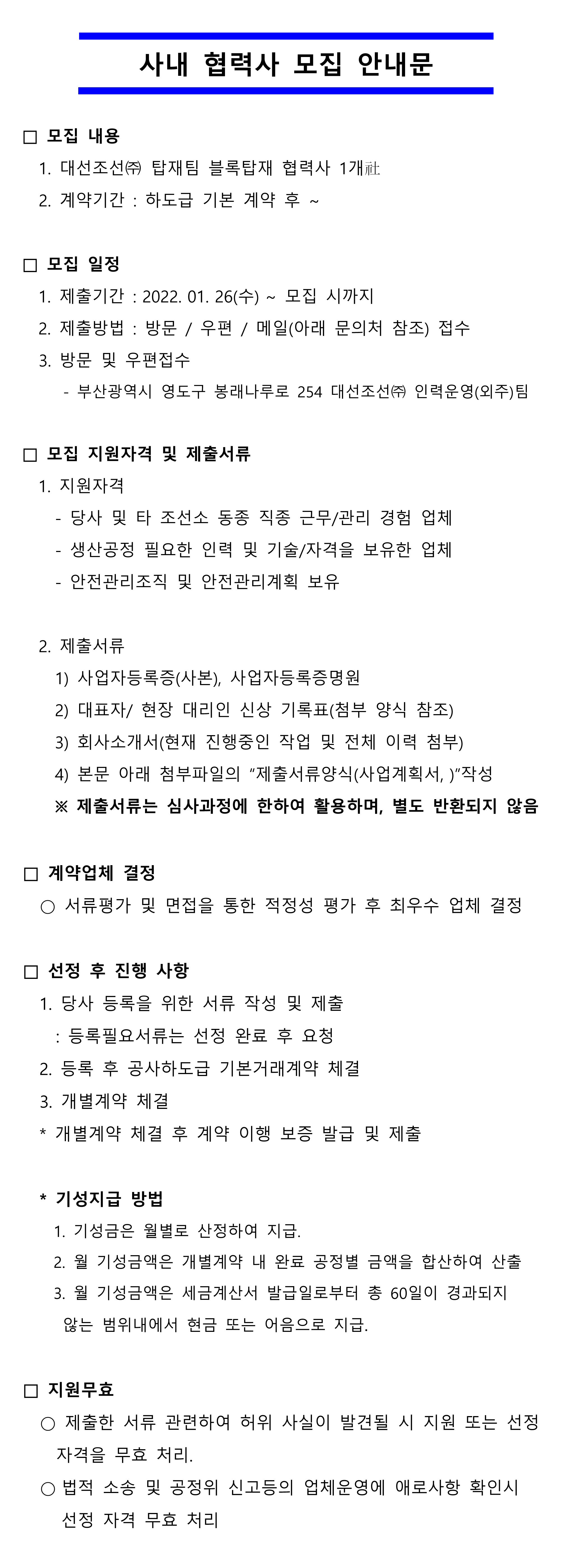 첨부파일 · 사내 협력사 모집 안내_탑재_20220103.pdf· 제출서류 양식.docx